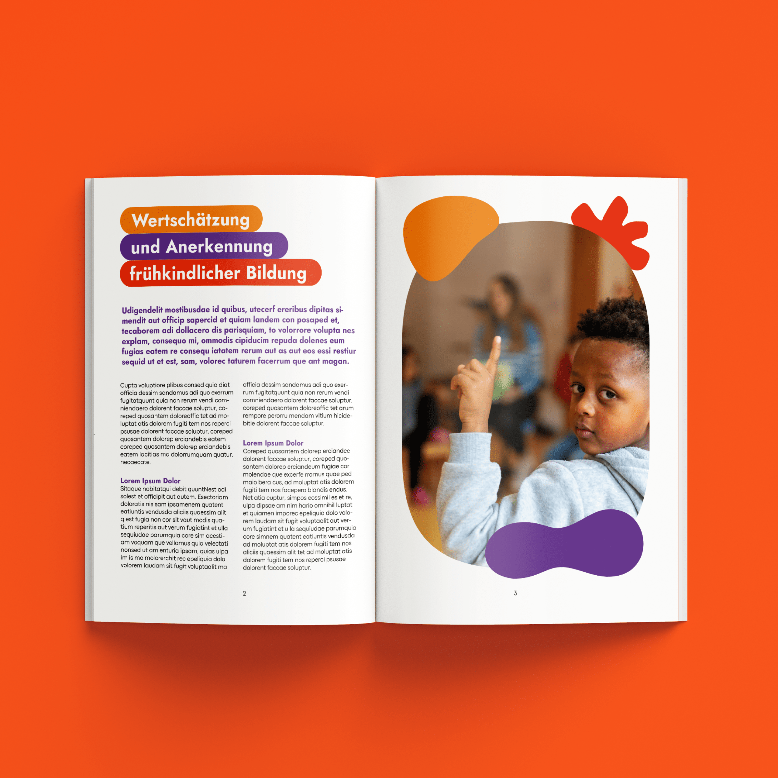 Ein modulares Gestaltungssystem mit spielerischen Grafikelementen. Ein konsistenter Styleguide sorgt für flexible Anwendbarkeit über alle Medien hinweg.