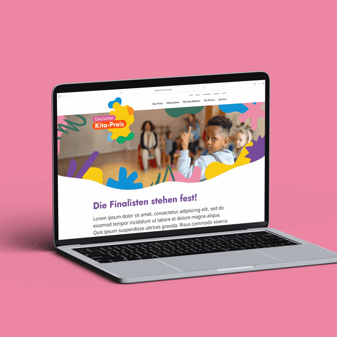 Das umfassende Redesign für den Deutschen Kita-Preis der Deutschen Kinder und Jugend Stiftung (DKJS) macht Vielfalt sichtbar und lädt zum Mitmachen ein. Die bestehende Farb- und Formensprache wurde aufgegriffen, modernisiert und durch ein erweitertes Icon-Set ergänzt. Herzstück ist eine farbenfrohe Wort-Bild-Marke in mehreren Farbvarianten, erweitert durch minimalistische Logo-Versionen für Web und Print.